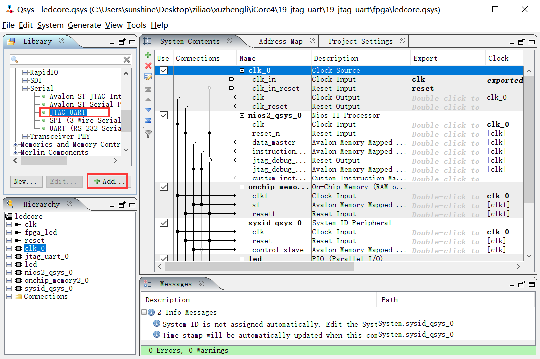 实验十九:使用JTAG UART终端打印信息