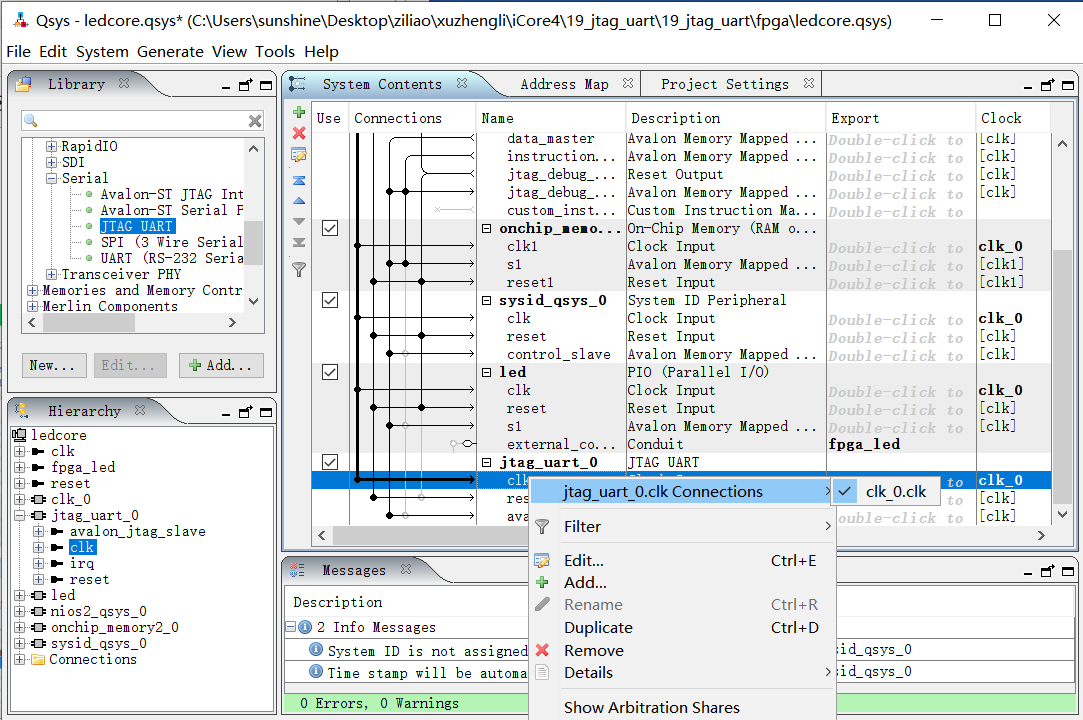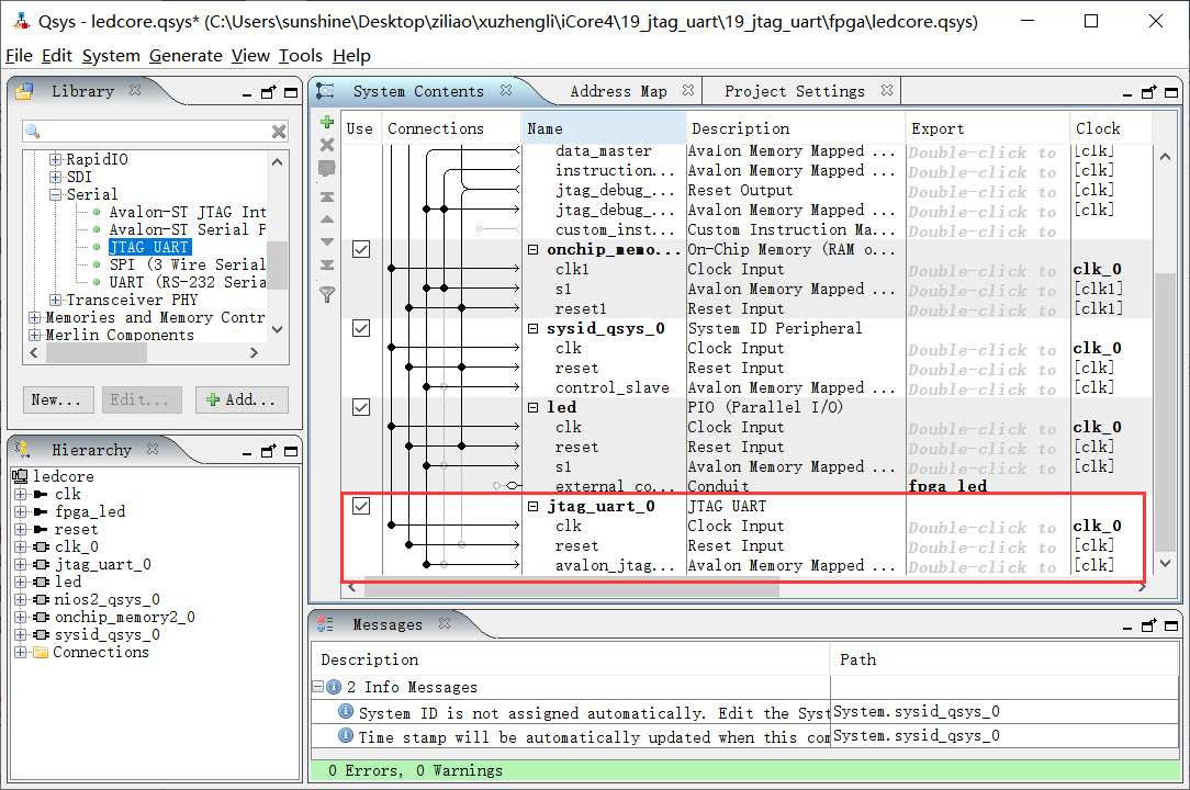 2. 掌握JTAG UART使用方法。