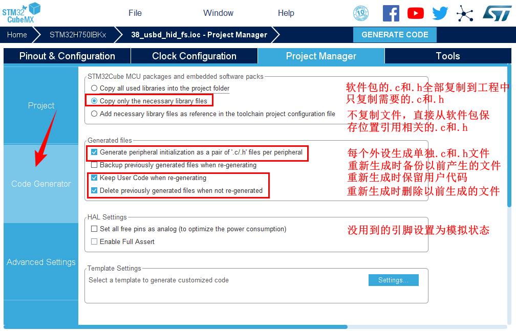 12.点击Code Generator,进行进一步配置