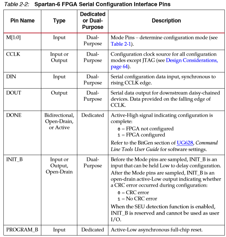 Slave Serial模式下FPGA信号线如23-3中所示,各信号定义参考图23-4表格。