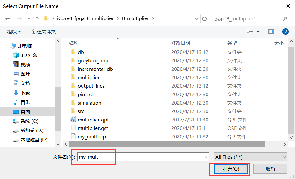 6、此时就完成了乘法器的创建。在程序中调用该乘法器即可实现乘法器功能。相关代码如下。