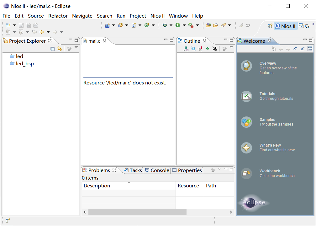 1、点击菜单栏中的Tools→NiosII Software Build Tools for Eclipse,打开NIOS 软件,选择正确的路径(与QuartusII工程路径一致),点击OK。
