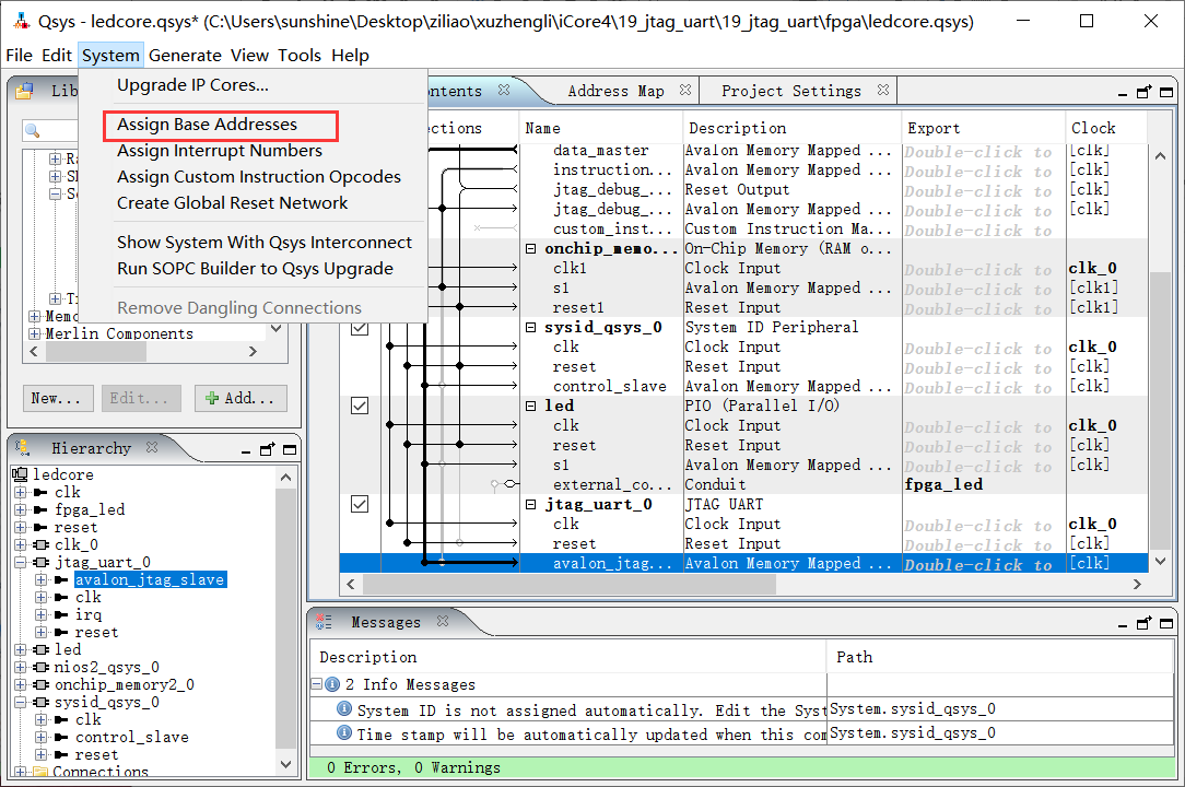 12、点击System→Assign Base Address重新分配基地址,如图所示: