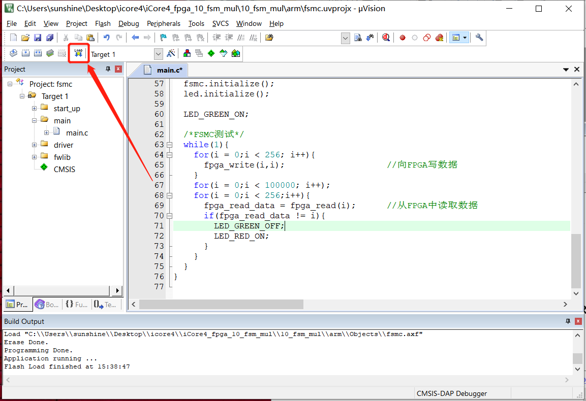 6、点击图10-7所示按钮将,程序烧写进iCore4上的STM32中。