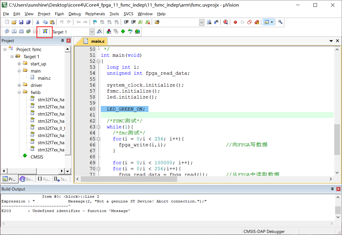 6、点击图11-7红框中的按钮将程序烧写进iCore4上的STM32中。