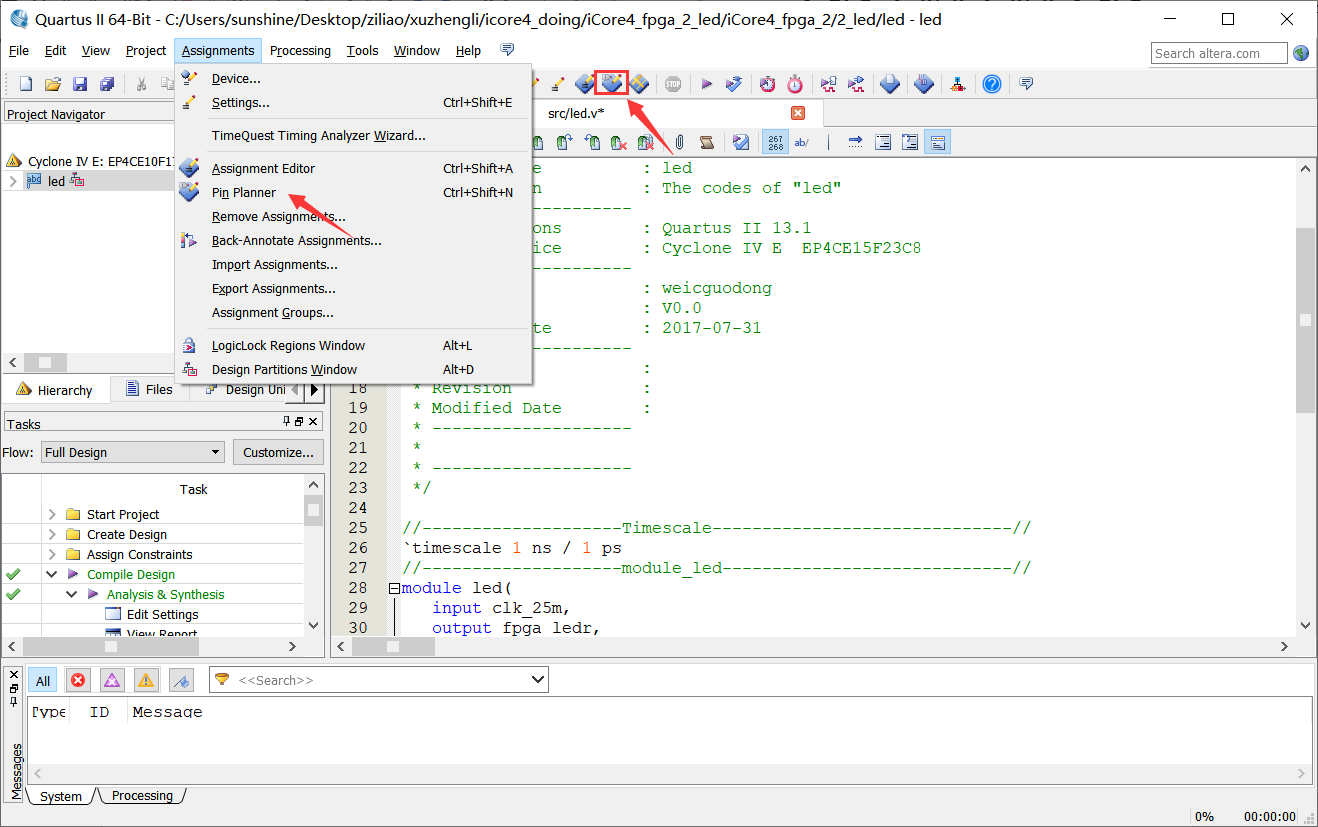 4. 掌握FPGA引脚配置方法。