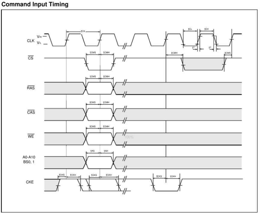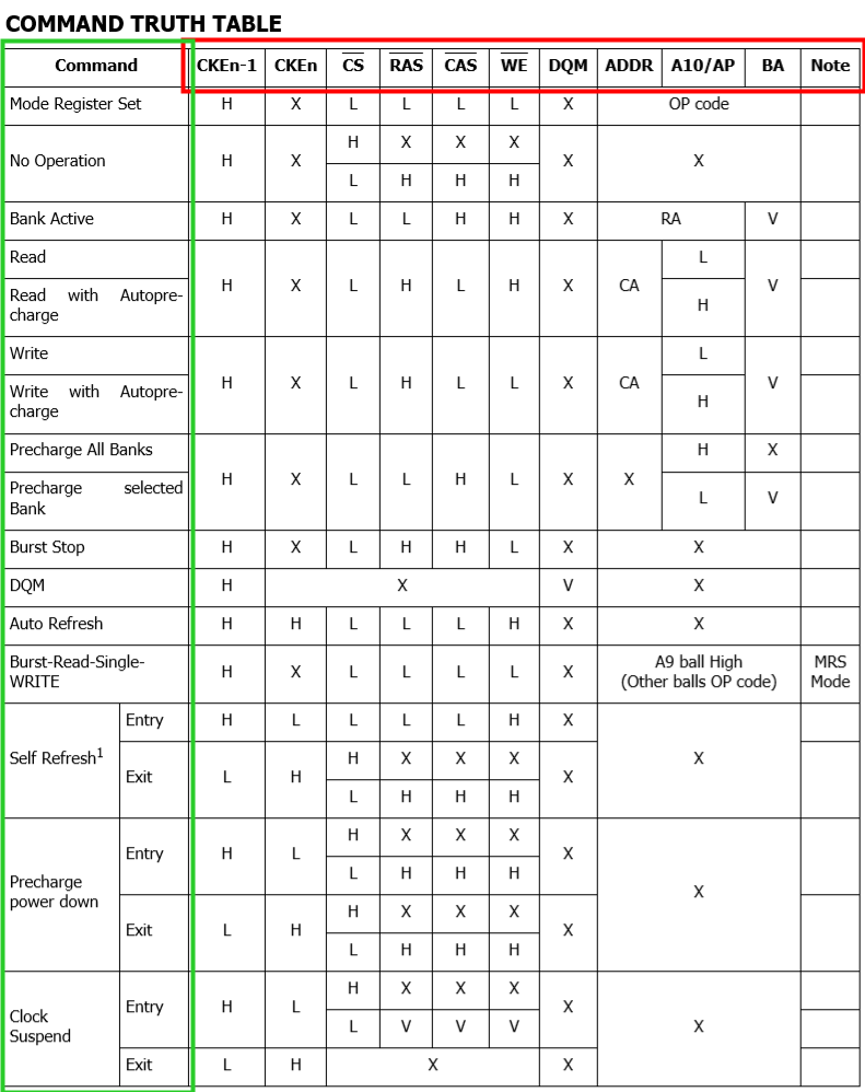 always @(posedge SDRAM_CLK or negedge RST_n) if (!RST_n) begin SD_BA_r <= 2'b11; SD_AB_r <= 12'hFFF; SD_CMD <= `CMD_Init;//上电复位后,发送命令Init end else case (Init_Stste) `Init_NOP: begin SD_BA_r <= 2'b11; SD_AB_r <= 12'hFFF; SD_CMD <= `CMD_NOP; //空闲状态发送NOP命令 end `Init_PCH: begin if (Init_Cnt_CLK == 5'd0) //进入预充电状态后第一个上升沿发送命令 begin //即为之前注释的发送命令滞后1个周期 SD_BA_r <= 2'b11; SD_AB_r <= 12'hFFF; SD_CMD <= `CMD_PCH; //发送PCH命令 end else SD_CMD <= `CMD_NOP; end `Init_AR1,`Init_AR2,`Init_AR3,`Init_AR4, `Init_AR5,`Init_AR6,`Init_AR7,`Init_AR8: begin if (Init_Cnt_CLK == 5'd0) begin SD_BA_r <= 2'b11; SD_AB_r <= 12'hFFF; SD_CMD <= `CMD_REF; //刷新状态发送刷新命令 end else SD_CMD <= `CMD_NOP; end `Init_MRS: begin//模式寄存器设置状态 if (Init_Cnt_CLK == 5'd0)//同PCH状态 begin SD_BA_r <= 2'b00; //必须为00 SD_AB_r <= {2'b00, //必须为00 1'b1, //写模式,0为突发读突发写,1为突发读单次写 2'b00, //必须为0 3'b011, //CL值,010为2,011为3 1'b0, //访问模式,0为顺序模式,1为交错模式 3'b000};//BL值,000为1,001为2,010为4,011为8,111为全页 SD_CMD <= `CMD_MRS; //进入MRS状态后,滞后1个周期发送MRS命令 end else SD_CMD <= `CMD_NOP; end
