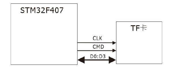 STM32407上带有SDIO控制器,iCore3核心板上将SDIO连接到TF卡座上,本实验将Miro SD卡插入TF卡座上。硬件连接示意图如下: SD卡信息
