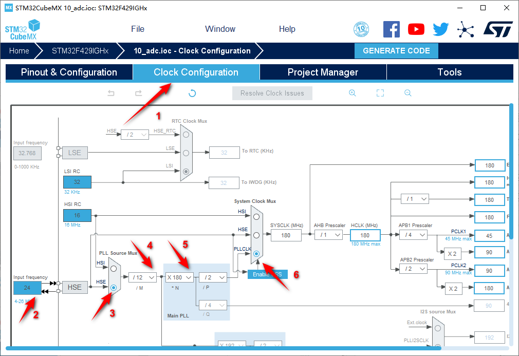 3.配置RCC,使用外部时钟源