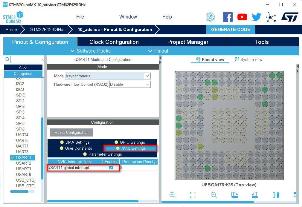 8.在NVIC Settings一栏使能接收中断