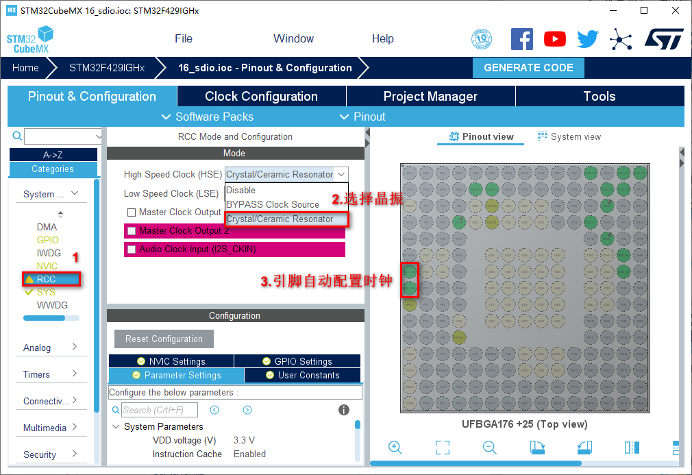 10.时钟源设置,选择外部高速时钟源,配置为最大主频