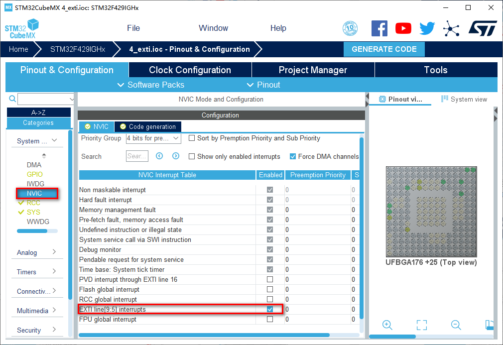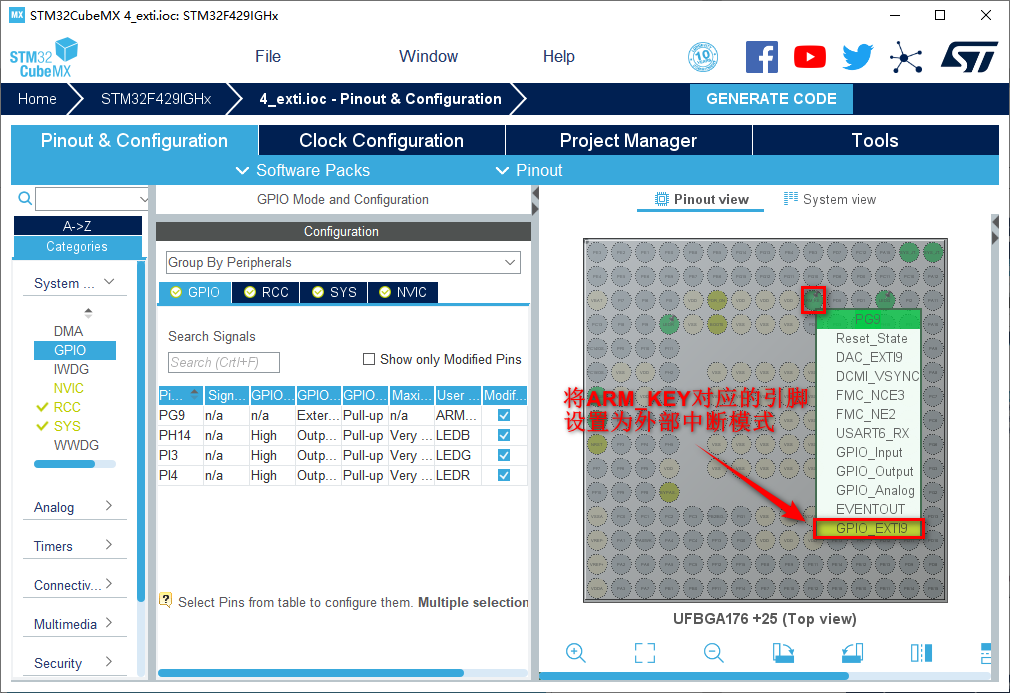 6.将ARM_KEY对应的引脚PG9设置为GPIO_EXTI9