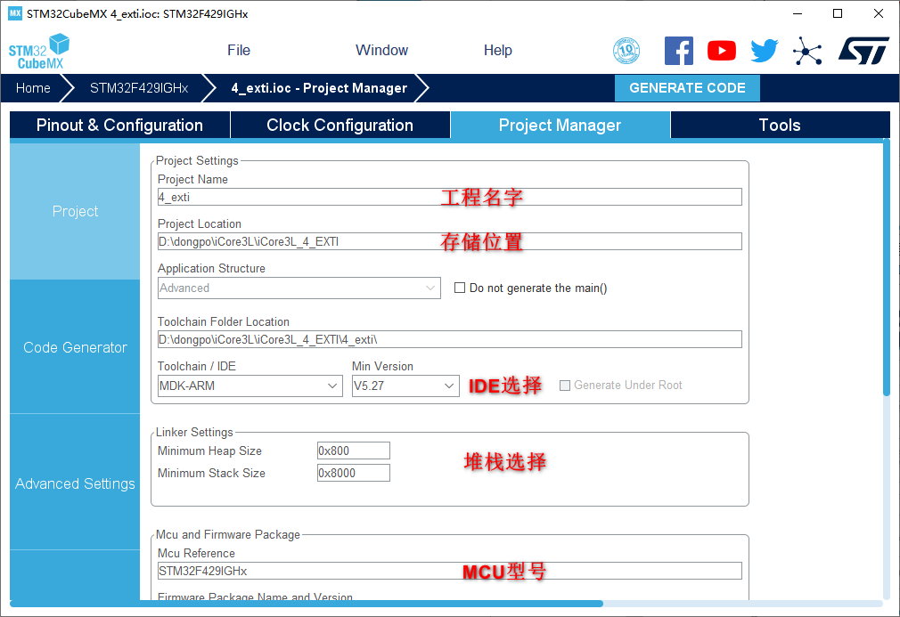 10.工程文件的设置, 这里就是工程的各种配置 我们只用到有限几个,其他的默认即可IDE我们使用的是 MDK V5.27