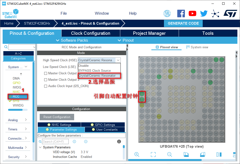 9.时钟源设置,选择外部高速时钟源,配置为最大主频