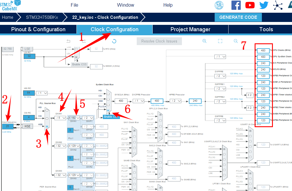 6.将ARM_KEY对应的引脚PH7设置为GPIO_Intput