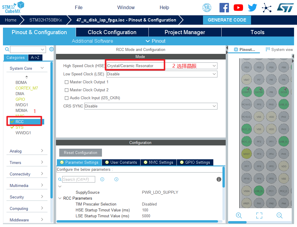 3.配置RCC,使用外部时钟源