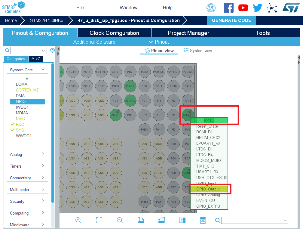 5.将PA10,PB7,PB8,PD4,PI4,PI8设置为GPIO_Output,PC13,PD4设置为GPIO_Input