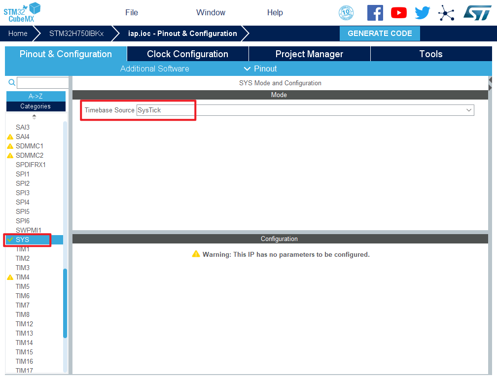 12.然后点击GENERATE CODE 创建工程 创建成功,打开工程。