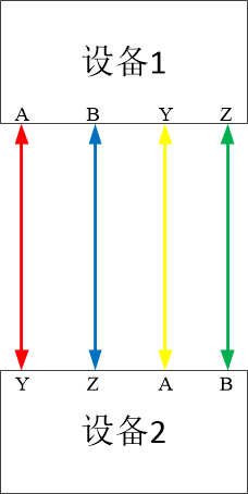 RS422设备为全双工设备,相当于两路RS485。RS422收发器有两个控制引脚、4各信号引脚(TX+、TX-、RX+、RX-),其中TX+等价RS485的485A引脚,TX-等价RS485的485B引脚。如果RS422接口标识为A、B、Y、X四个名称,则Y对应RS422的RX+,Z对应RS422的RX-。