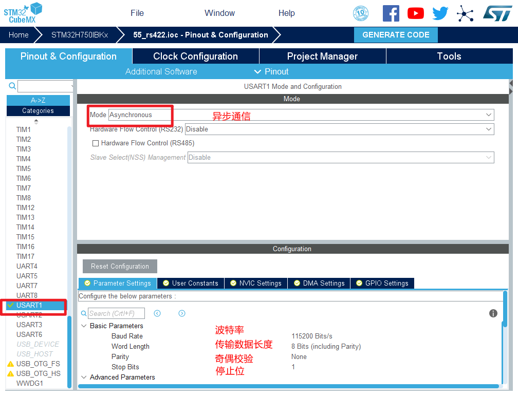 STM32CubeMX教程五十五——RS_422通信实验