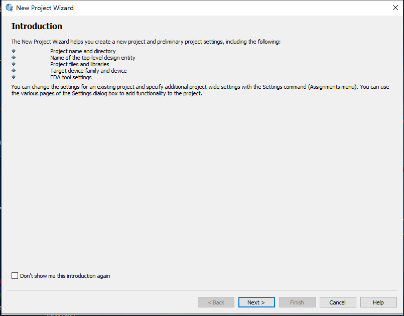 4、在此界面选择工程存放的路径,设置工程名及顶层文件名称,如图2.5所示。