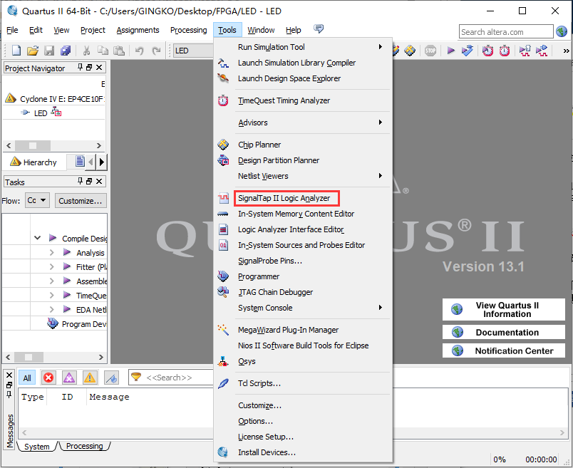 以led驱动程序为例,通过使用signaltap工具查看led信号的状态,使用户掌握signaltap的基本使用方法。