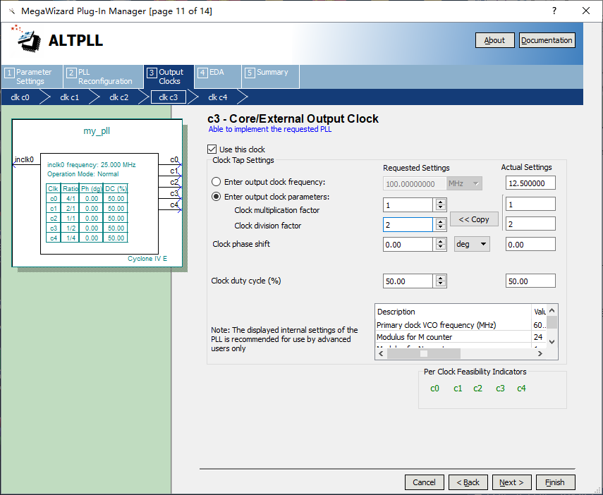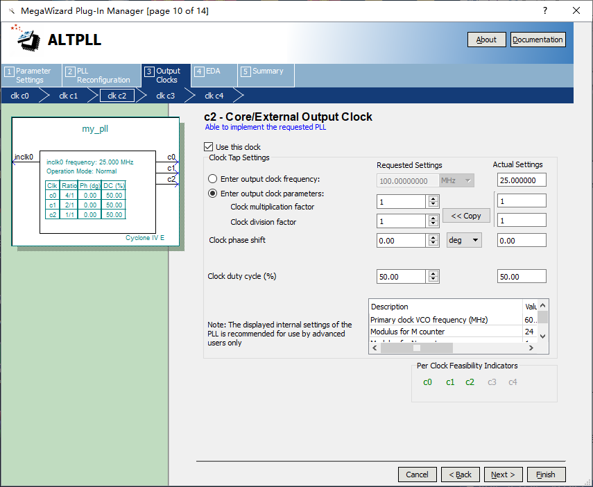 10、输出第二路时钟信号50MHz,设置参数如图7.10所示。 图7.10