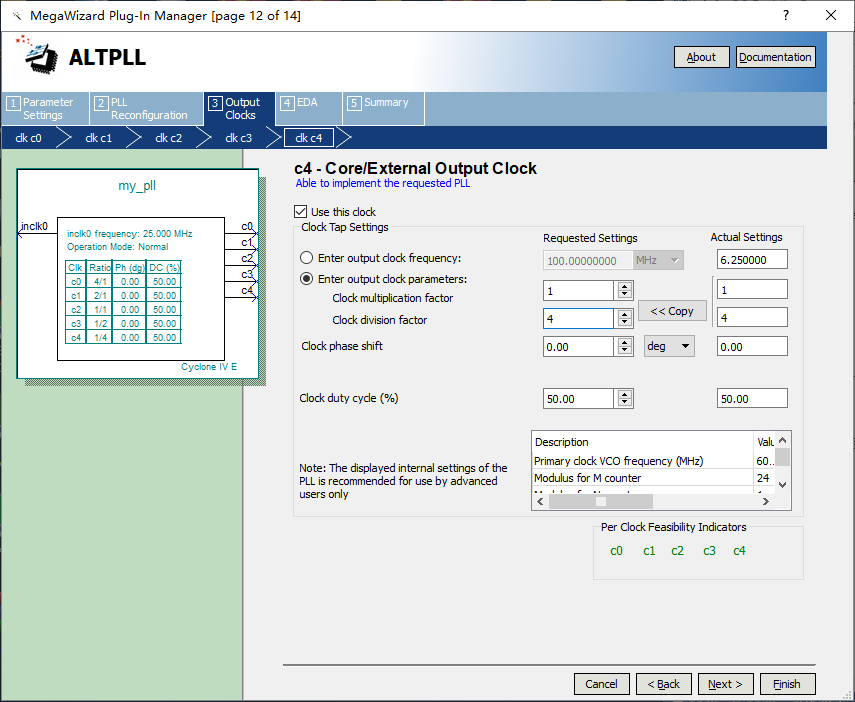 13、输出第五路时钟信号6.25MHz,设置参数如图7.13所示。 图7.13