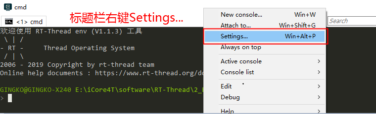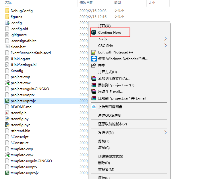 • 打开工程文件rt-thread/bsp/stm32/stm32h750-gingko-icore4t,右击鼠标点击ConEmu Here
