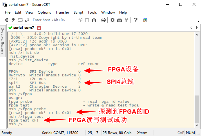 iCore4T上,RAM通过SPI4总线与FPGA通信,今天,我将给大家分享RTT添加SPI总线和FPGA驱动,最后实现FPGA的读写测试。