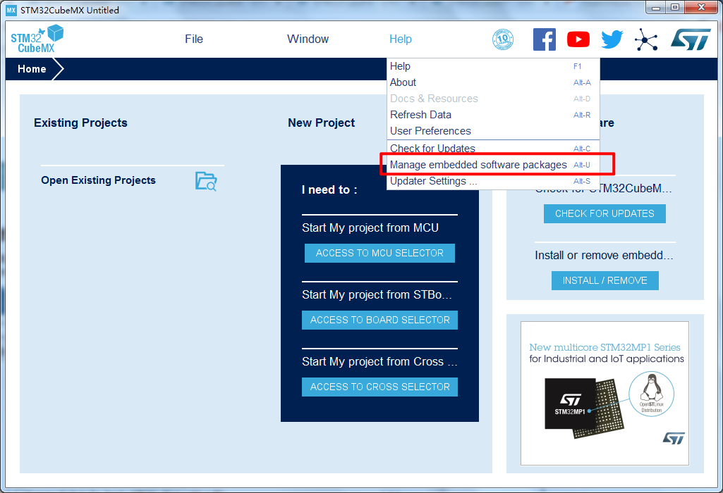 STM32CubeMX集成了一个全面的软件平台,支持STM32每一个系列的MCU开发。这个平台包括 STM32Cube HAL(一个 STM32 的抽象层集成软件,确保STM32 系列最大的移植性)。再加上兼容的一套中间件(RTOS、USB、TCP/IP 和图形),所有内嵌软件组件附带了全套例程。