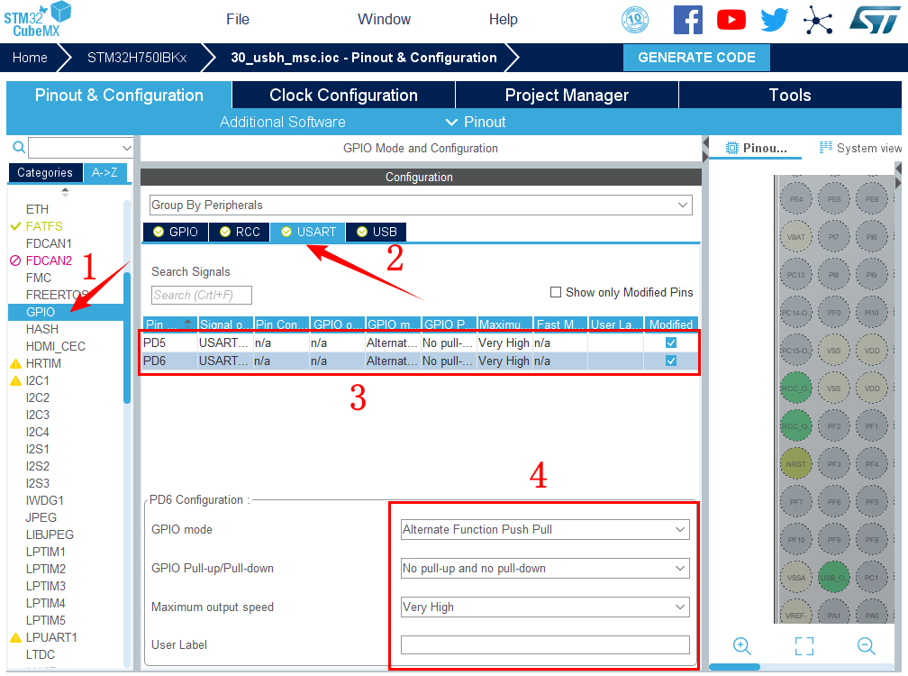 6.引脚模式配置。