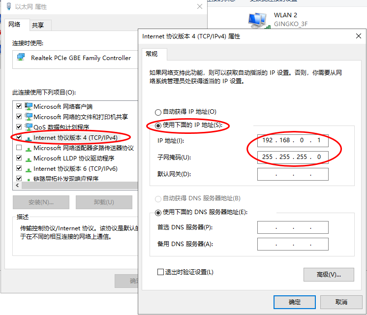 1、打开控制面板–>网络和Internet–>网络和共享中心–>更改适配器设置–>以太网属性