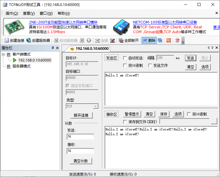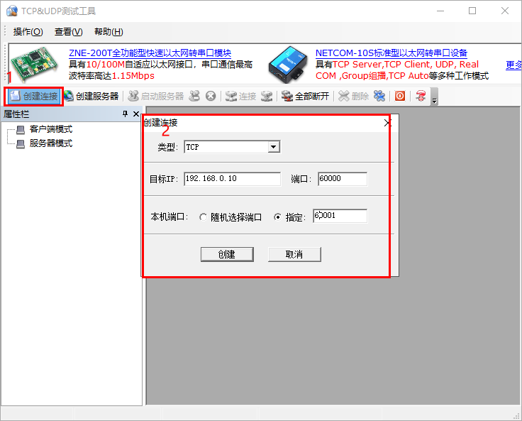 打开TCP&UDP测试工具;(安装及使用方法件附录2)