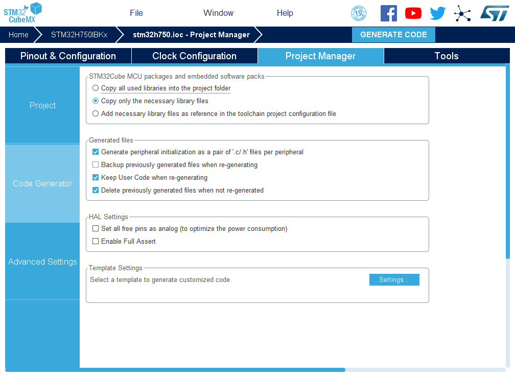 • Generate peripheral initialization as a pair of ‘.c/.h’ files per peripheral