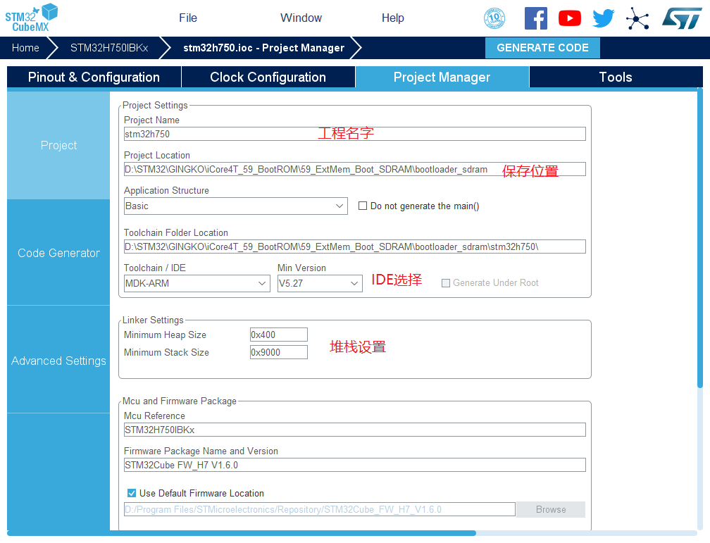 15.工程文件的设置, 这里就是工程的各种配置 我们只用到有限几个,其他的默认即可 IDE我们使用的是 MDK V5.27