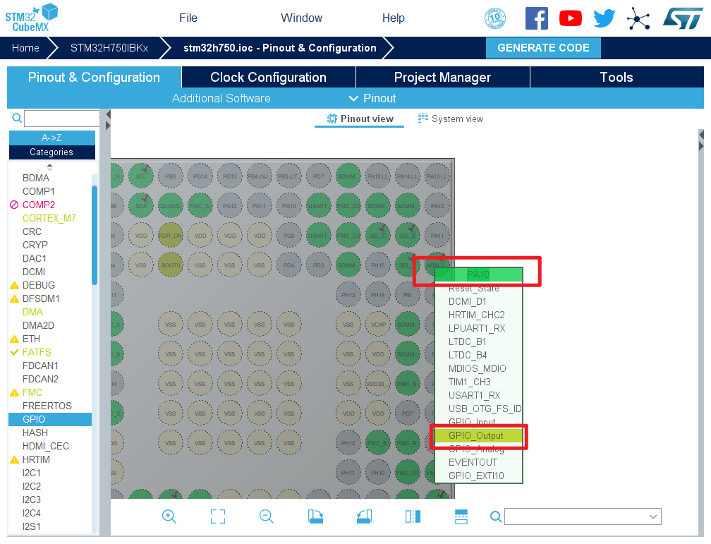 5.将PA10,PB7,PB8设置为GPIO_Output