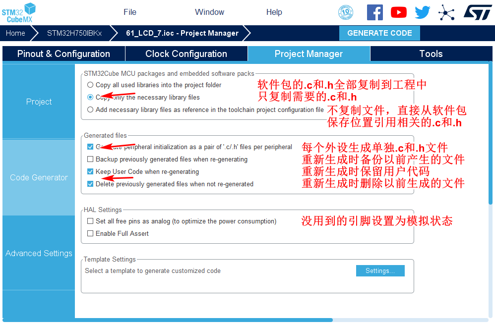 12.然后点击GENERATE CODE 创建工程 创建成功,打开工程。