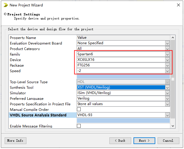2、选择FPGA器件型号并,点击 Next。