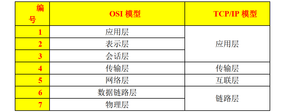 • TCP/IP协议不是TCP和IP这两个协议的合称,而是指因特网整个TCP/IP协议族。从协议分层模型方面来讲,TCP/IP由四个层次组成:网络接口层、网络层、传输层、应用层。OSI是传统的开放式系统互连参考模型,该模型将TCP/IP分为七层:物理层、数据链路层(网络接口层)、网络层(网络层)、传输层(传输层)、会话层、表示层和应用层(应用层)。TCP/IP模型与OSI模型对比如图所示。