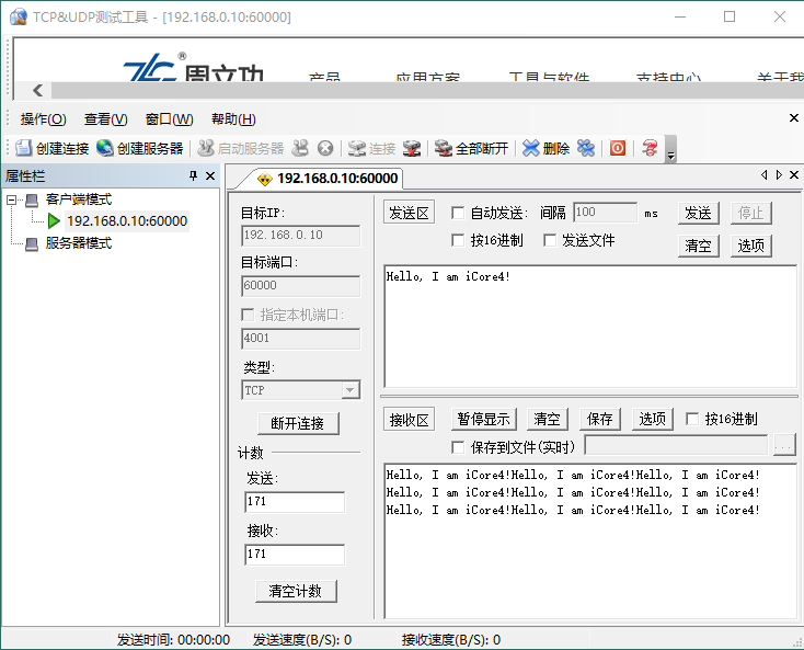 6. 打开TCP&UDP测试工具;(安装及使用方法见附录);