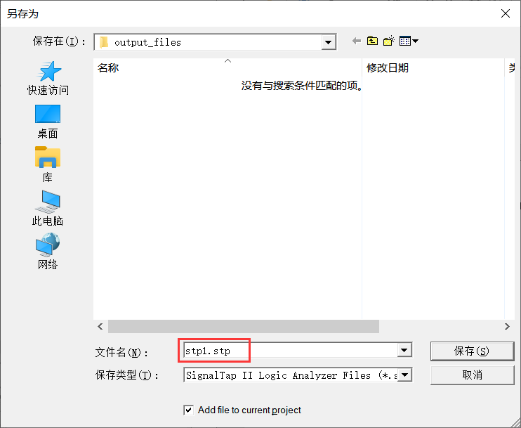 11、设置保存的文件名称(signaltap.stp),路径可以默认也可以自行设定,如图4-11所示。