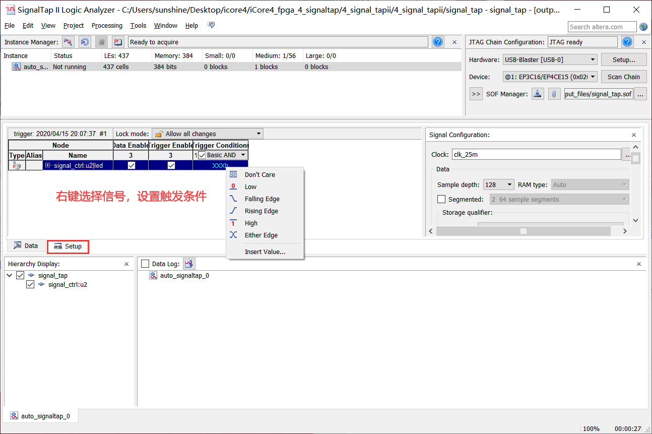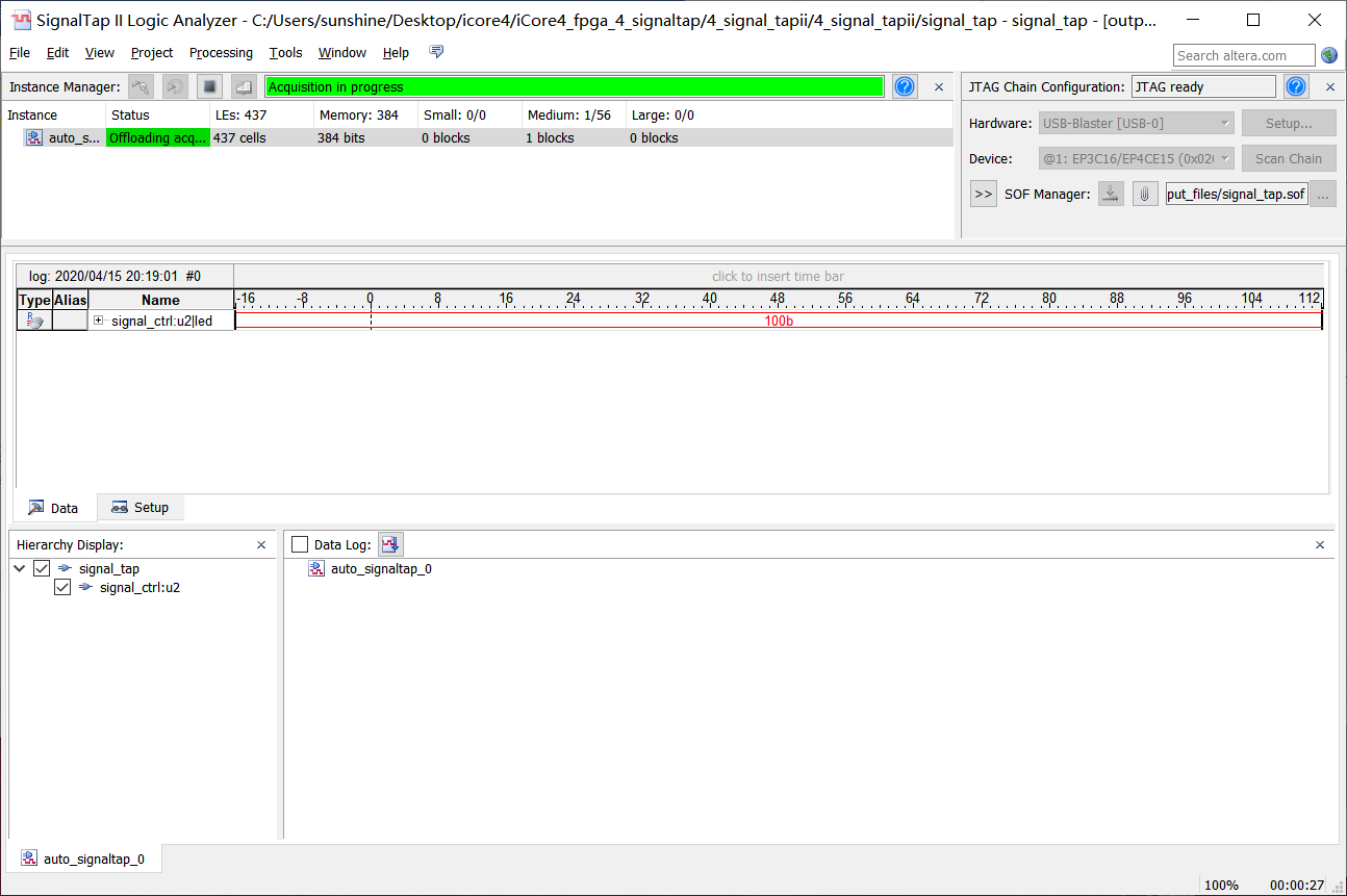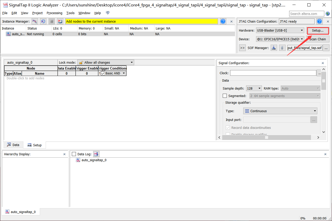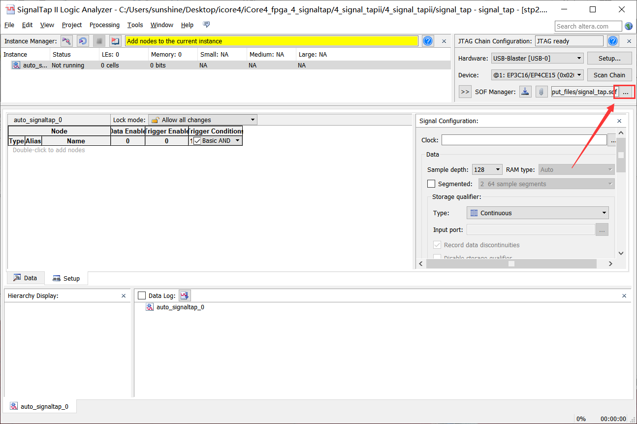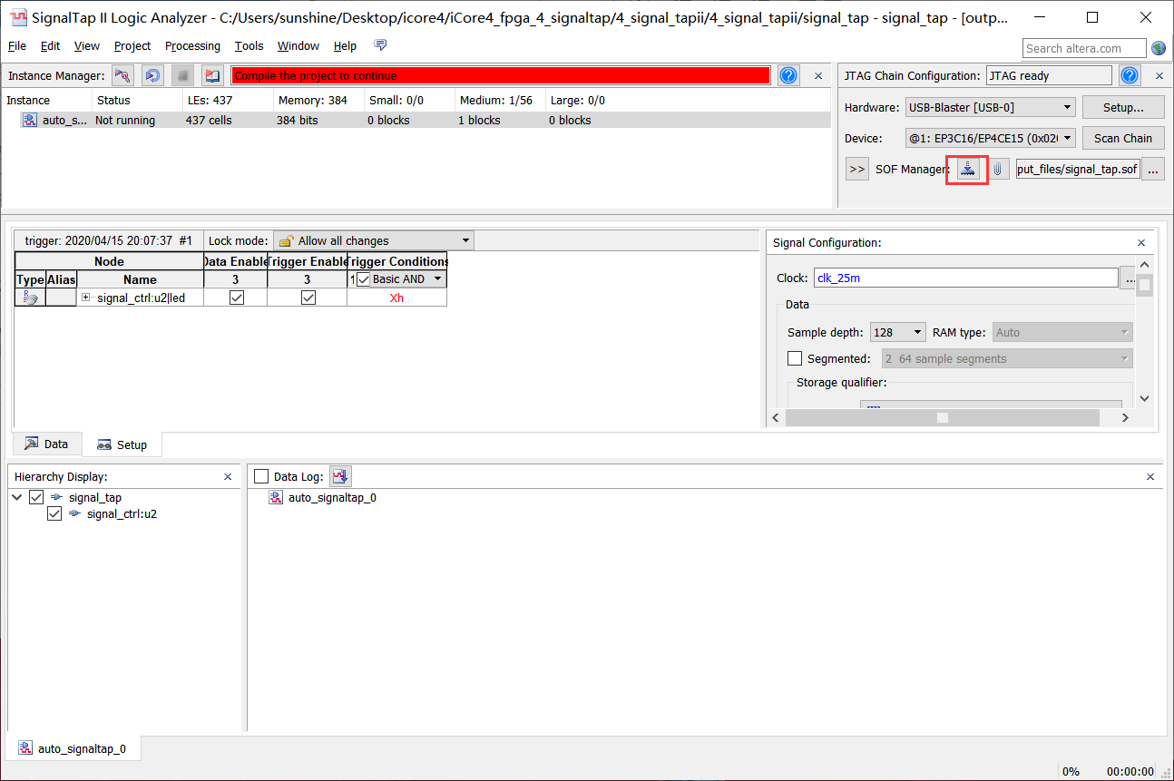 13、回到Signaltap界面点击下载按钮下载程序,如图4-13所示。