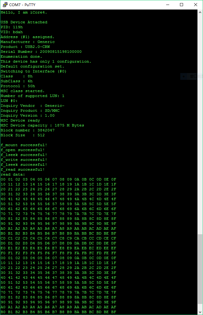 STM32F767的USB_OTG_HS支持U盘,并且ST官方提供了USB HOST大容量存储设备(MSC)例程,本实验,我们就要移植该例程到iCore4双核心板上,以通过STM32F767的USB HOST接口,读写U盘或SD卡读卡器等设备。