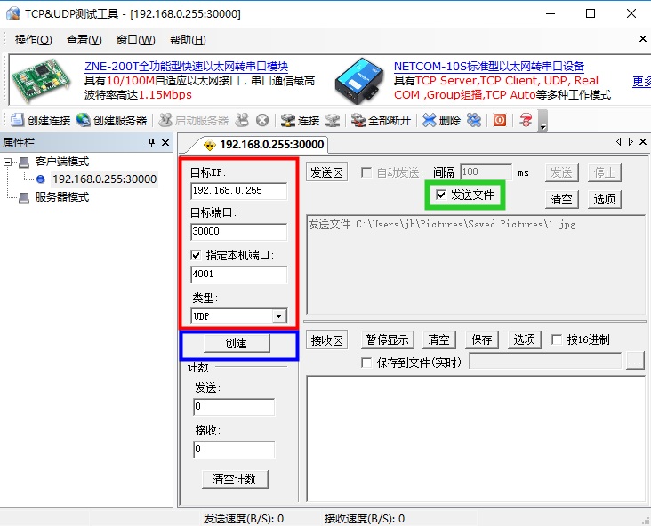 在解析UDP包头的时候,也对目标端口进行了判断。要保证TCP&UDP测试软件设置的时候的端口值和此处代码中的端口值保持一致,否则会导致数据接收失败。