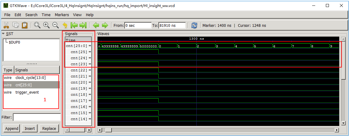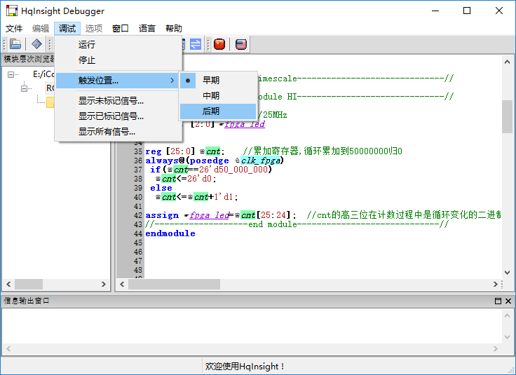 7、用户在选择好各种信号后, 需要点击”保存工程”菜单项或者相应按钮, 对工程进行保存。 实际上, 只要用户对工程做了任何改变,都需要保存工程, 这样 HqInsight 才能根据用户的设置生成调试需要的 IP 核及中间配置文件。