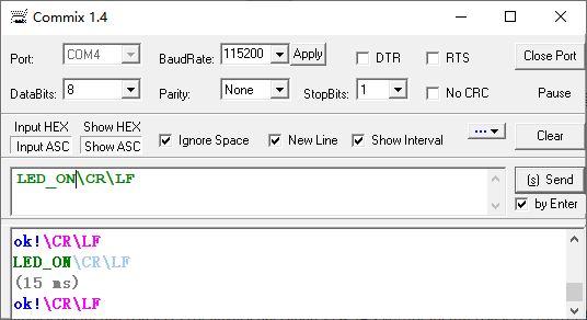 | LED_ON\r\n | LED灯亮 |