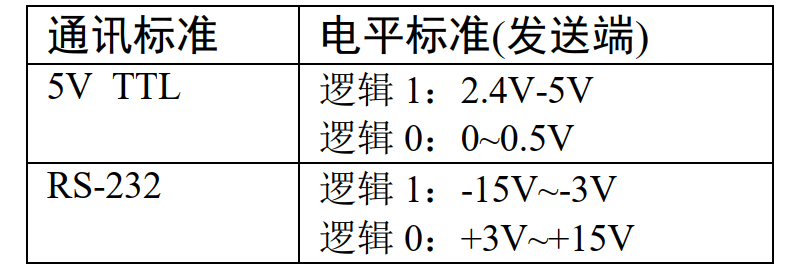 号作为逻辑“1”,TTL电平为5V为逻辑正,0为逻辑负。与TTL电平不兼容故需使用电平转换电路方能与TTL电路连接。