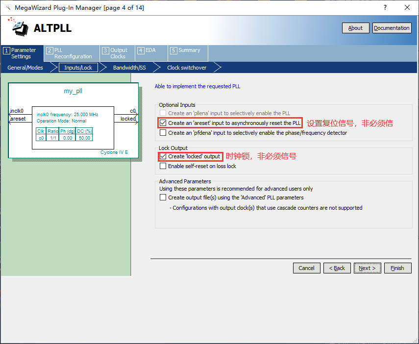 5、添加时钟复位信号和时钟锁,两个都是非必须信号,一般不需要添加,如图7.5所示。 图7.5