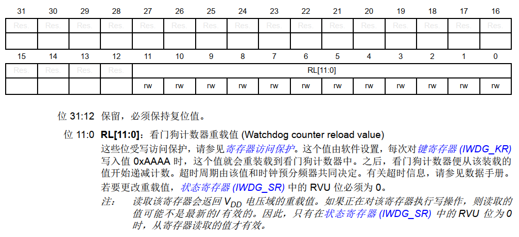 (3) 重装载寄存器(IWDG_RLR)